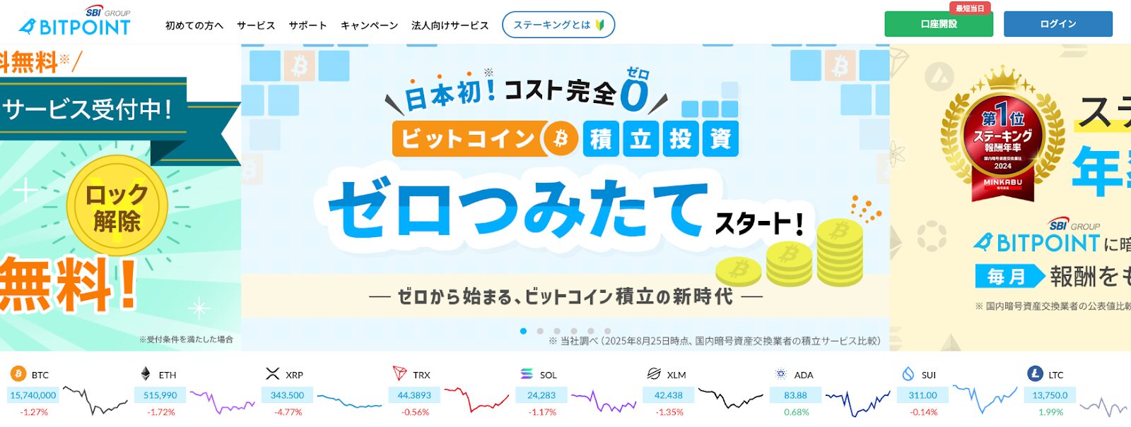 BITPointの「ゼロつみたて」は、ビットコインの積立手数料が完全無料です。