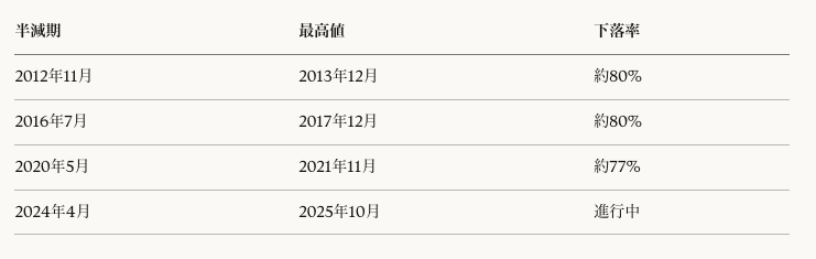 ただし、「半減期の約1〜2年後に下落が来る」というパターン自体は、アノマリー(経験的に観測される規則性)として多くの投資家に意識されています。