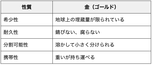 それらが組み合わさることで、金(ゴールド)は優れた価値の保存手段になり得たのです。