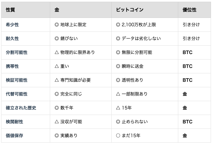 ハードマネー9つの性質 | 金(ゴールド)とビットコインの比較