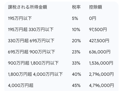 所得が高額になると、所得税 45%、住民税 10%、復興特別所得税を合わせて最大約 55% の税金がかかります。