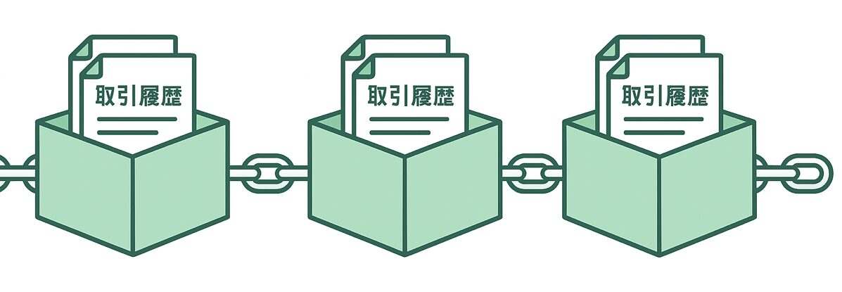 ブロックチェーンは「分散型台帳技術」とも呼ばれ、トランザクション(取引履歴)をブロックとして記憶します。