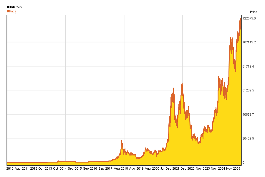 2010年7月頃 0.5ドルでしたが、2025年8月には 1万4千ドルに達したこともありました。